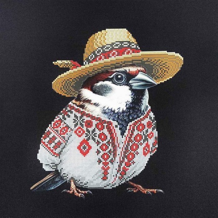 КВ-3016 Квадрат "Горобець в вишиванці". Схема для вишивки бісером