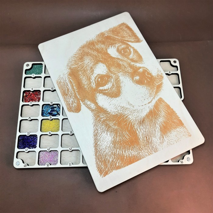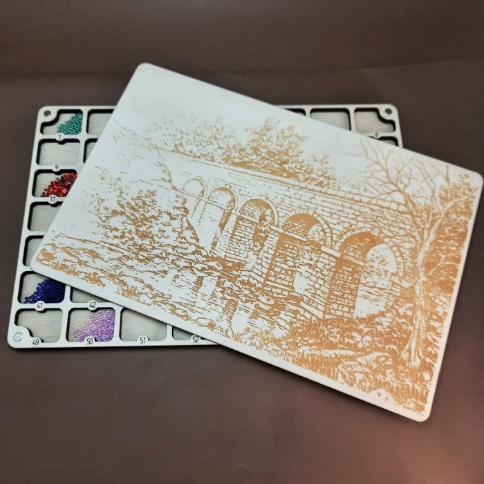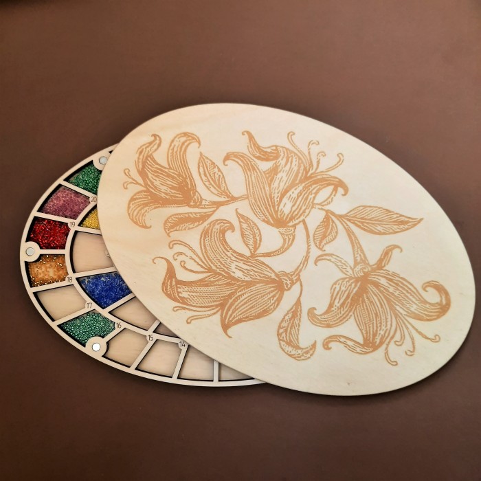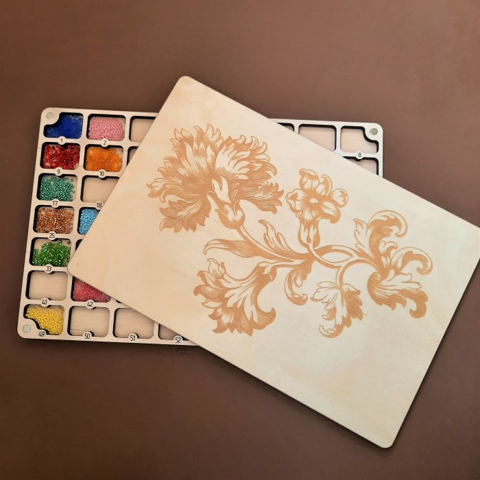 Органайзер для бісеру з дерев'яною кришкою на 56 пронумерованих комірок з кольоровим друком (060120)