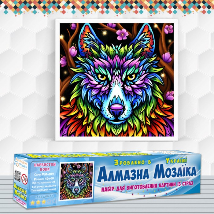 Алмазна вишивка (набір) "Барвистий вовк" (DM-409)