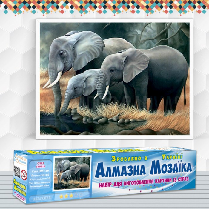 Алмазна вишивка (набір) "Сім'я слонів" (DM-189)