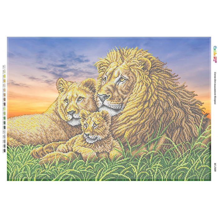 БС-2109 Родина левів ІІ (частк. вишивка). Схема для вишивки бісером