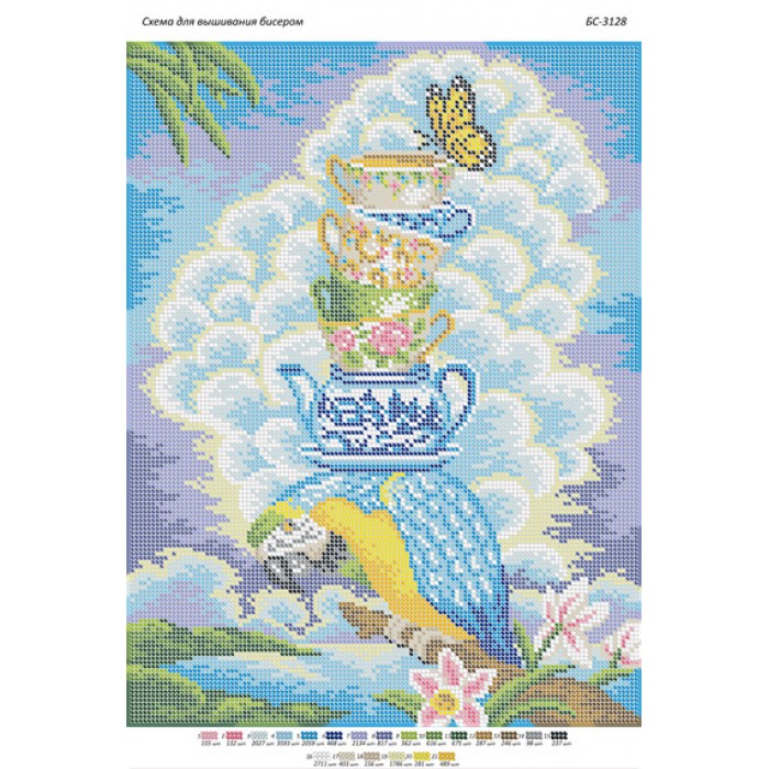 БС-3128 Папуга з чашками. Схема для вишивки бісером