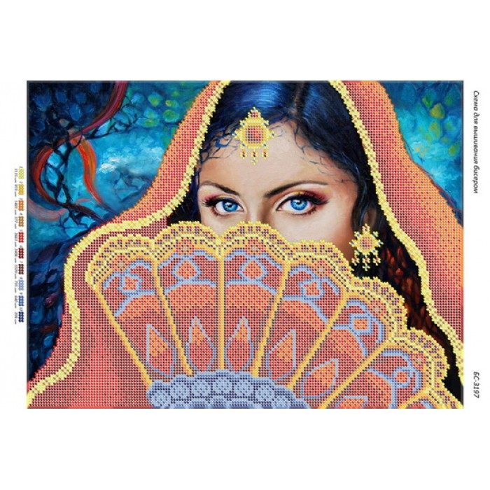 БС-3197 Дівчина з віялом. Схема для вишивки бісером