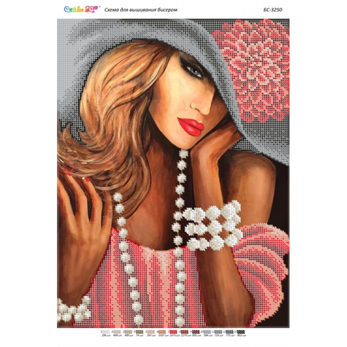 БС-3250 Дівчина з червоною квіткою (частк. вишивка). Схема для вишивки бісером