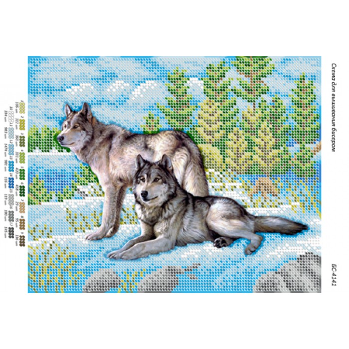 БС-4141 Вовки на снігу (частк. вишивка). Схема для вишивки бісером