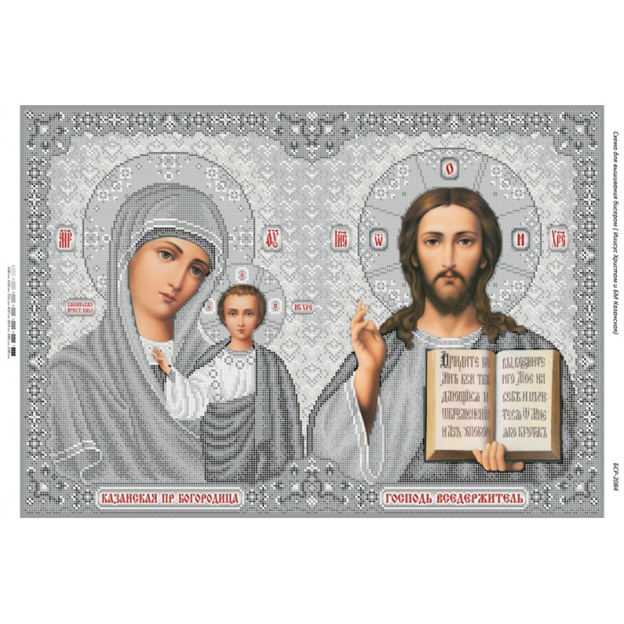 Немає відгуків про товар БСР-2084 Ісус Христос і БМ Казанська (срібло). Схема для вишивки бісером