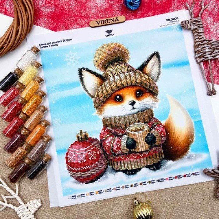 Квадрат "Лисеня з кавою" КВ 3005 (КВ-3005_Бісер)