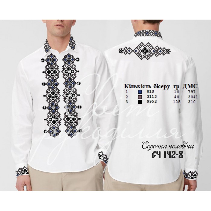 Заготовка чоловічої сорочки СЧ 142-8 (СвР) під вишивку бісером або нитками.