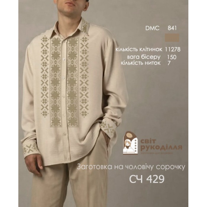 Заготовка чоловічої сорочки СЧ 429 (СвР) під вишивку бісером або нитками.