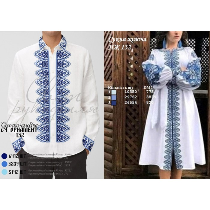 Заготовка чоловічої сорочки СЧ "Орнамент 132" під вишивку бісером або нитками.