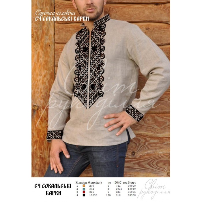 Заготовка чоловічої сорочки СЧ "Сокальські барви" (СвР) під вишивку бісером або нитками.
