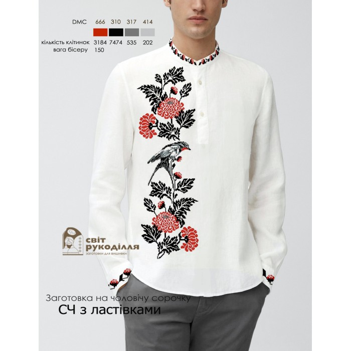 Заготовка чоловічої сорочки СЧ "З ластівками" (СвР) (СвР) під вишивку бісером або нитками.