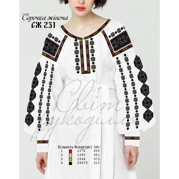 Заготовка жіночої блузи СЖ 231 під вишивку бісером або нитками.