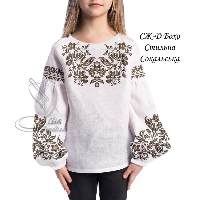 Заготовка сорочки дитячої СЖ-Д "Стильна сокальська" для дівчинки віком від 3 до 9 років під вишивку бісером або нитками.