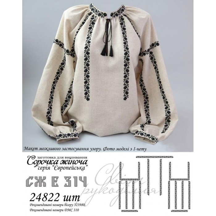Заготовка жіночої блузи СЖ Е 314 під вишивку бісером або нитками.