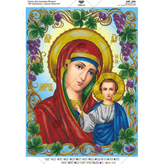 Схема для вишивки бісером "БМ Казанська з Ісусом Христом" (А3Р-289)