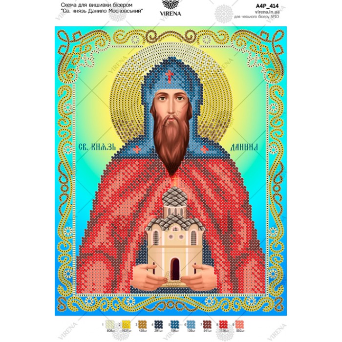 Схема для вишивки бісером "Св. князь Данило Московський" (А4Р-414)