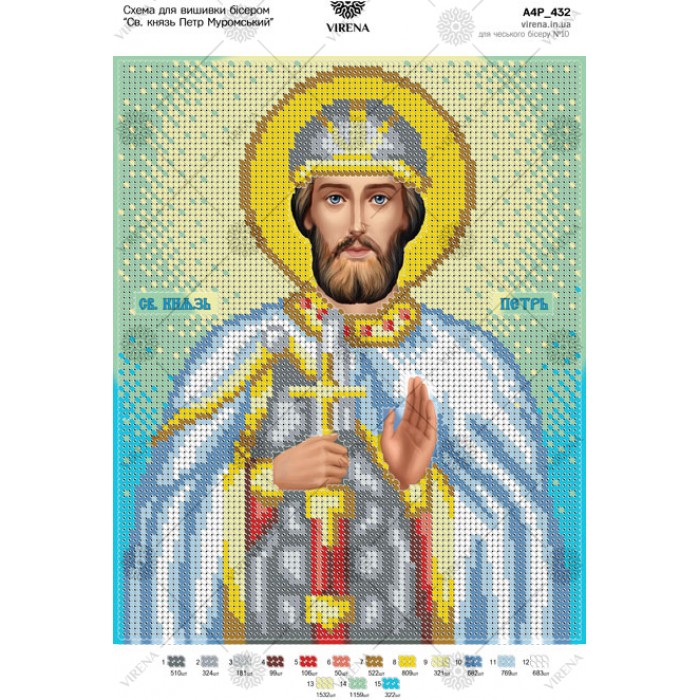 Схема для вишивки бісером "Св. князь Петр Муромський" (А4Р-432)