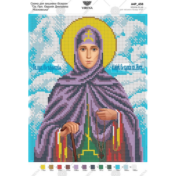 Схема для вишивки бісером "Св. Преподобна Євдокія Дмитрівна Московська (Єфросинія)" (А4Р-438)