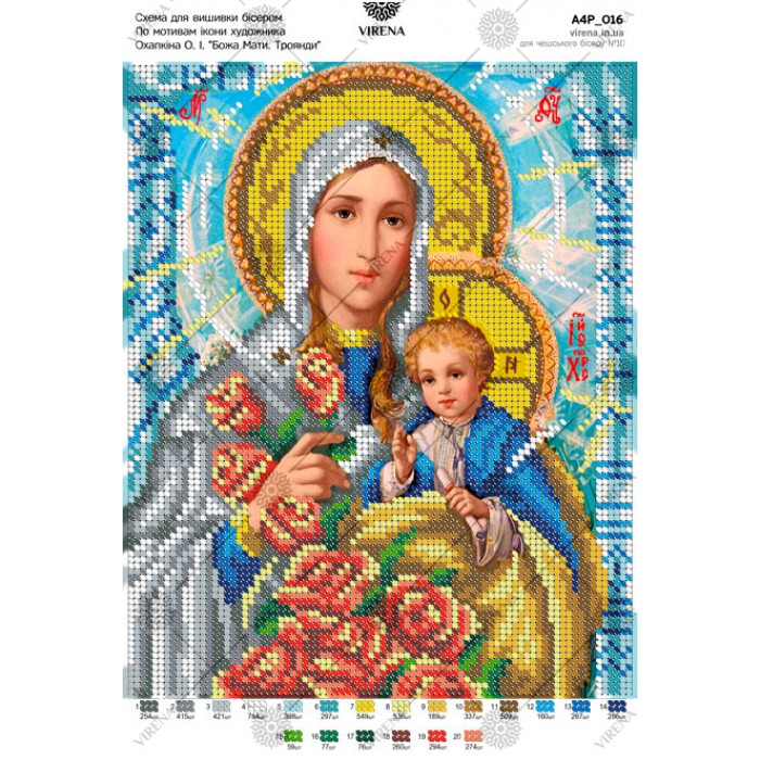 Схема для вишивки бісером за мотивами ікони О.Охапкіна «Божа Мати. Троянди» (А4Р-016)