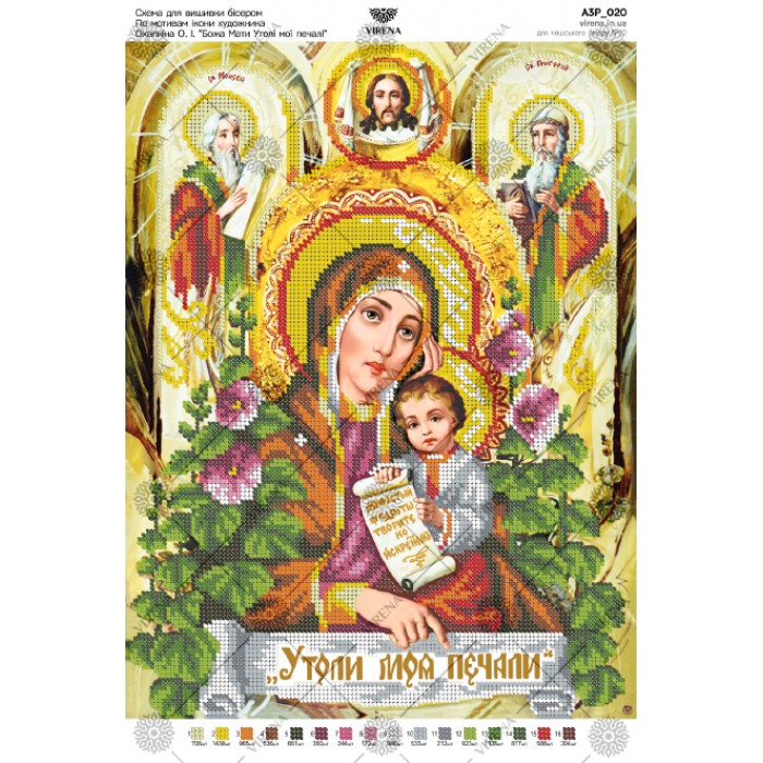 Схема для вишивки бісером за мотивами ікони О.Охапкіна «Божа Мати Утолі мої печалі» (А3Р-020)