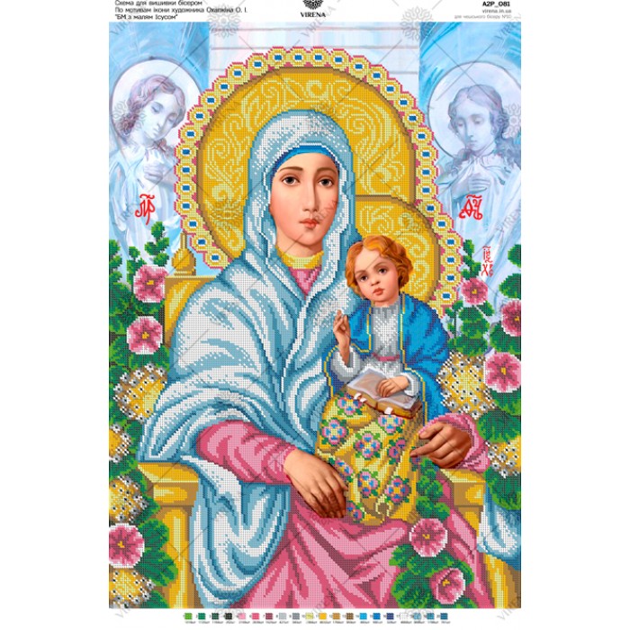 Схема для вишивки бісером за мотивами ікони О.Охапкіна "Божа Мати з малям ісусом" (А2Р-081)