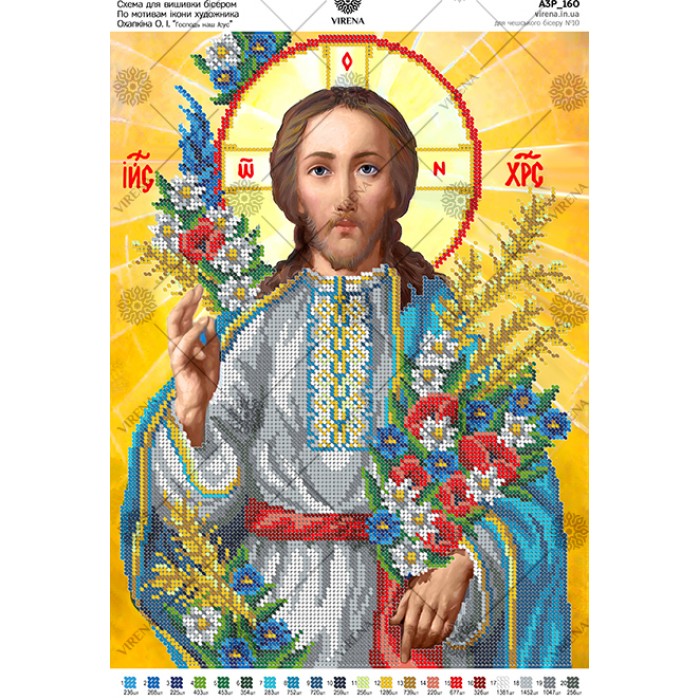 Схема для вишивки бісером за мотивами ікони О. Охапкіна "Господь наш Ісус" (А3Р-160)