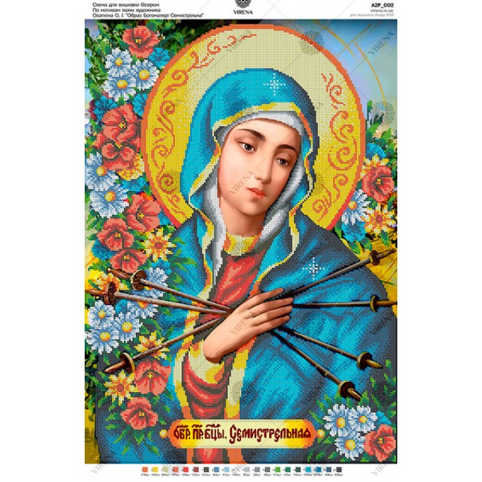 Схема для вишивки бісером за мотивами ікони О.Охапкіна «Образ Богоматері Семистрільна» (А2Р-002)