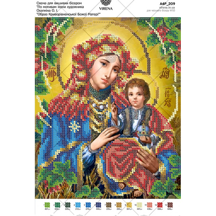 Схема для вишивки бісером за мотивами ікони О. Охапкіна "Образ Криворівненської Божої Матері" (А4Р-209)
