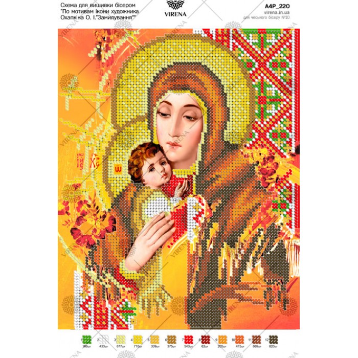Схема для вишивки бісером за мотивами ікони О. Охапкіна "Замилування" (А4Р-220)