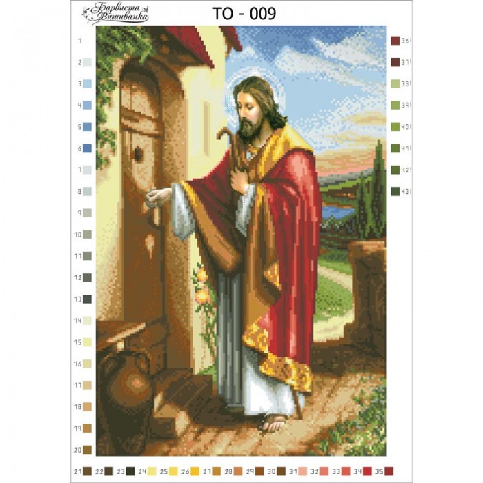 Схема картини "Христос стукає до кожного серця" для вишивки бісером на тканині (ТО-009)