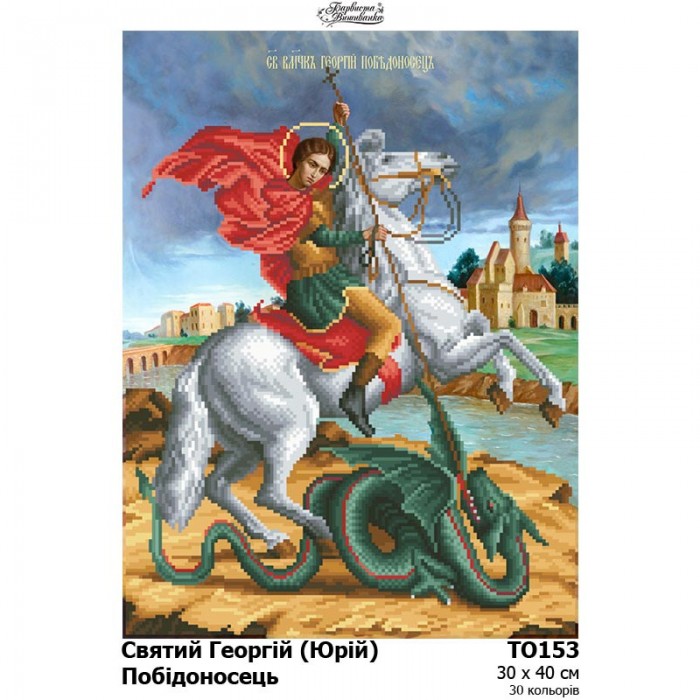 Схема картини "Святий Георгій (Юрій) Побідоносець" для вишивки бісером на тканині (ТО-153)