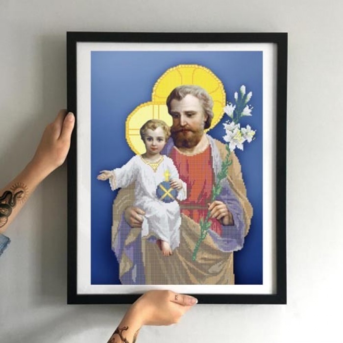 Схема картини Золота Підкова ЗПО-005 "Св.Йосип з Ісусом" для вишивання бісером на шовку