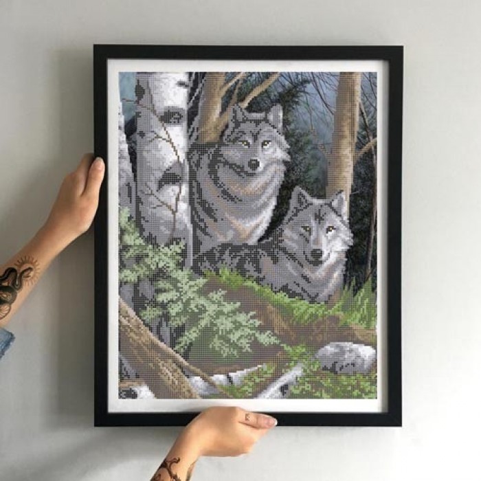 Схема картини Золота Підкова ЗПТ-016 "Вовки в лісі" для вишивання бісером на шовку