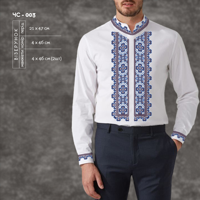 Заготовка для вишивки сорочки чоловічої ЧС-003 під вишивку бісером або нитками.