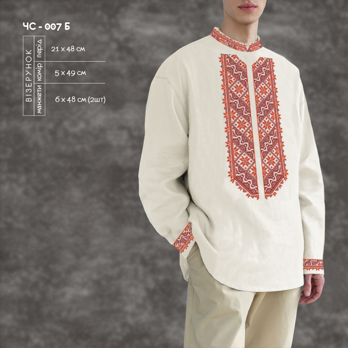 Заготовка для вишивки сорочки чоловічої ЧС-007Б під вишивку бісером або нитками.