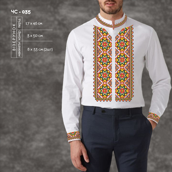 Заготовка для вишивки сорочки чоловічої ЧС-035 під вишивку бісером або нитками.