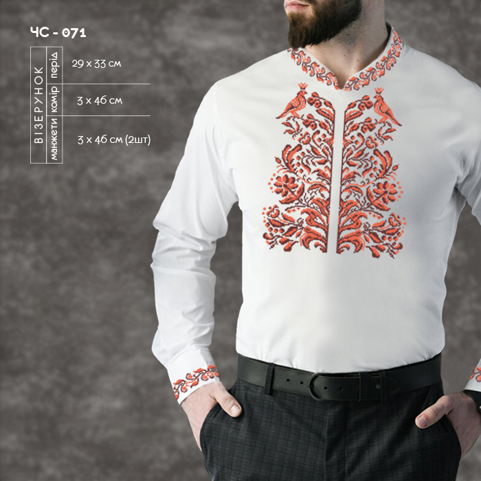 Заготовка для вишивки сорочки чоловічої ЧС-071 під вишивку бісером або нитками.
