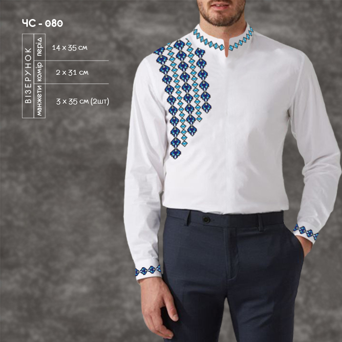 Сорочка чоловіча ЧС-080 Заготовка для вишивки сорочки чоловічої ЧС-080 під вишивку бісером або нитками.