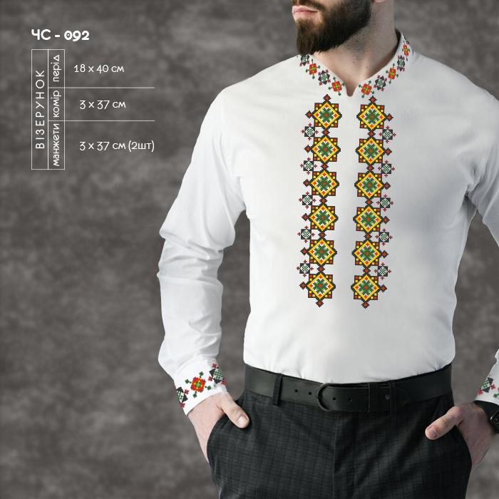 Сорочка чоловіча ЧС-092 Заготовка для вишивки сорочки чоловічої ЧС-092 під вишивку бісером або нитками.