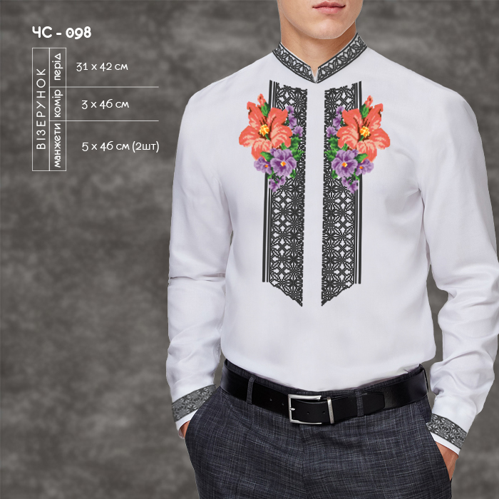 Сорочка чоловіча ЧС-098 Заготовка для вишивки сорочки чоловічої ЧС-098 під вишивку бісером або нитками.