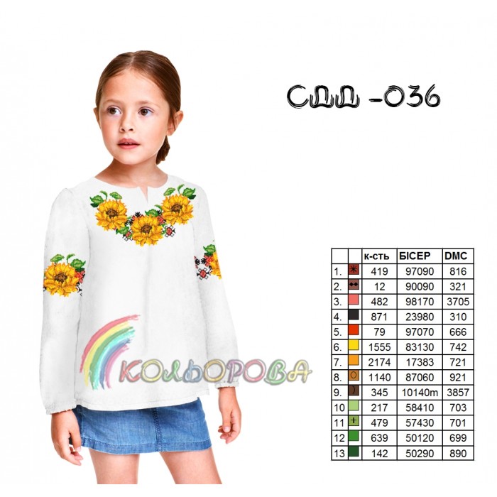 Заготовка для вишивки сорочки дитячої для дівчинки віком від 5 до 10 років СДД-036 під вишивку бісером або нитками.