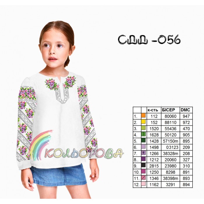 Заготовка для вишивки сорочки дитячої для дівчинки віком від 5 до 10 років СДД-056 під вишивку бісером або нитками.