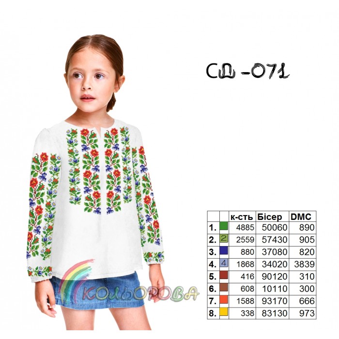 Заготовка для вишивки сорочки дитячої для дівчинки віком від 5 до 10 років СДД-071 під вишивку бісером або нитками.