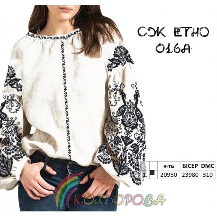 Заготовка для вишивки сорочки жіночої з рукавами в стилі ЕТНО - СЖ-ЕТНО-016А під вишивку бісером або нитками.