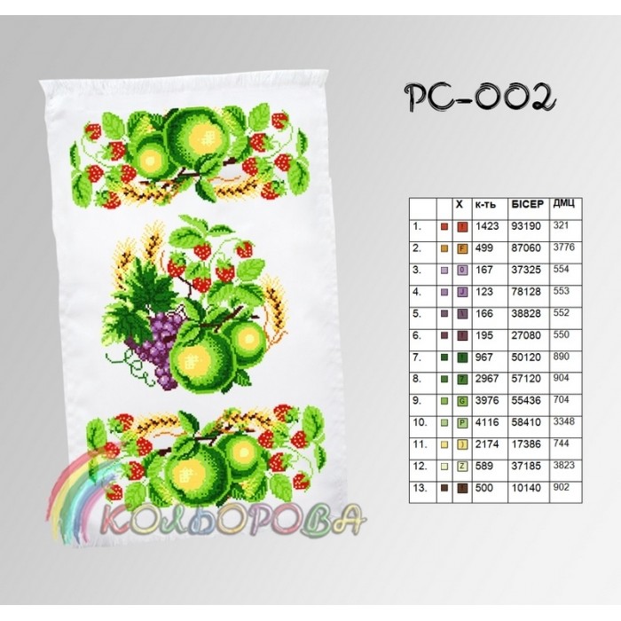 Також є титулка-ключ в якій прописані рекомендовані кольори бісеру Preciosa та ниток муліне DMC, їх кількість. Ми залишаємо за собою право змінювати кольори бісеру або ниток.
