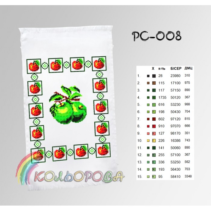 Також є титулка-ключ в якій прописані рекомендовані кольори бісеру Preciosa та ниток муліне DMC, їх кількість. Ми залишаємо за собою право змінювати кольори бісеру або ниток.