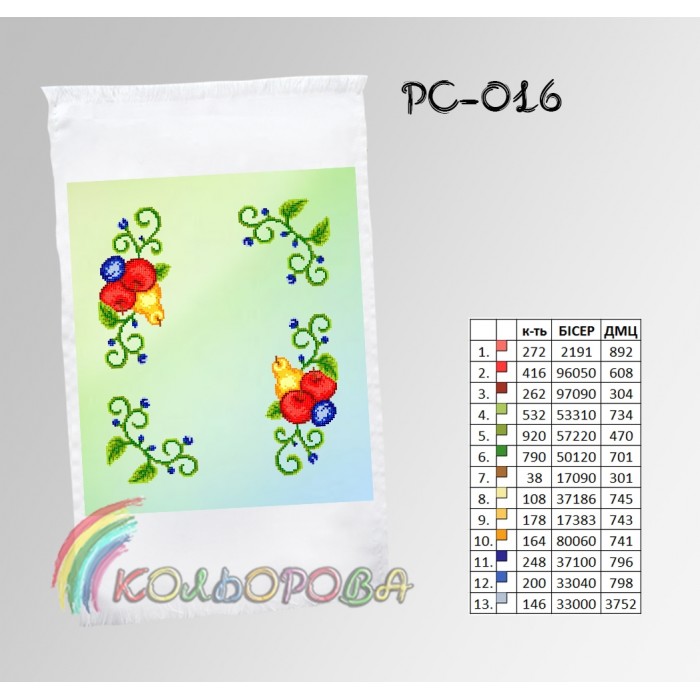Також є титулка-ключ в якій прописані рекомендовані кольори бісеру Preciosa та ниток муліне DMC, їх кількість. Ми залишаємо за собою право змінювати кольори бісеру або ниток.