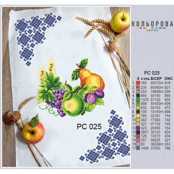 Також є титулка-ключ в якій прописані рекомендовані кольори бісеру Preciosa та ниток муліне DMC, їх кількість. Ми залишаємо за собою право змінювати кольори бісеру або ниток.