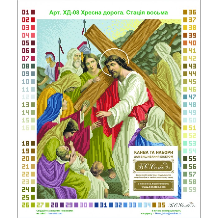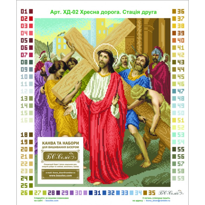 Схеми для вишивки бісером "Хресна дорога" - це спеціально розроблені малюнки, які відображають проходження Ісуса Христа через різні події й етапи його страждань. Ці схеми надають можливість вишивати детальні й живописні зображення, створюючи враження відтворення самої Хресної дороги.